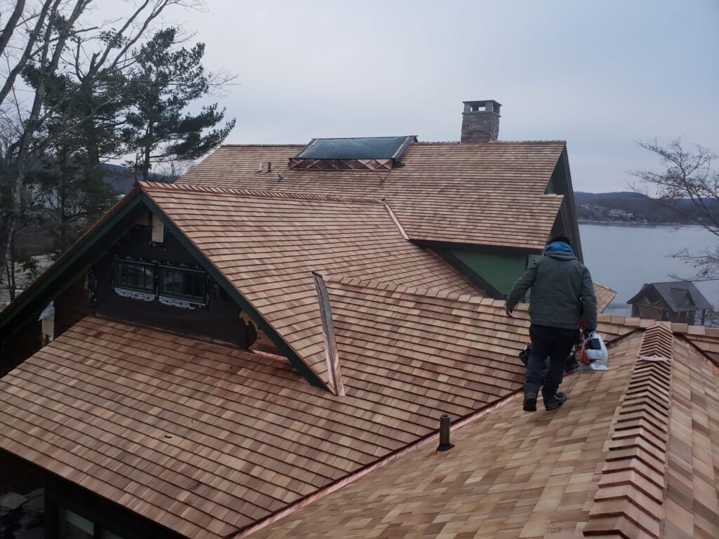 We recently had the roof replaced on our early-18th century home, both cedar and copper. And we also replaced the old, defunct aluminum gutters with new copper ones. Jose and his team were amazing! This was not a simple job, given the age of the home (nothing square or flat anywhere!) but they went about the job conscientiously and systematically, renewing old timbers where necessary and making everything work in the final result. They cleaned up meticulously at the end of each day, never leaving a mess behind. We are getting lots of compliments on the work done and our house looks beautiful again. Before this work, we would get water in our basement with each heavy rain. After this roof and gutter renovation our basement stays dry. Better to keep to water out in the first place. The house is in good shape for the next 50 years. Thank you!